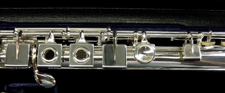 Our Custom SquareONE flutes are offered with a wide range of options to ensure that your flute is built with precisely the combination of features you want and need. We allow you to choose your metal combination (sterling, gold, or platinum); plateau vs. open hole keywork; inline or offset G keys; pitch (440, 442, or 444); a “stripped down” version or one loaded with extra features. The Custom Professional SquareONE features pointed arm detail work along with white gold springs, and the tone holes are applied with gold-germanium solder.